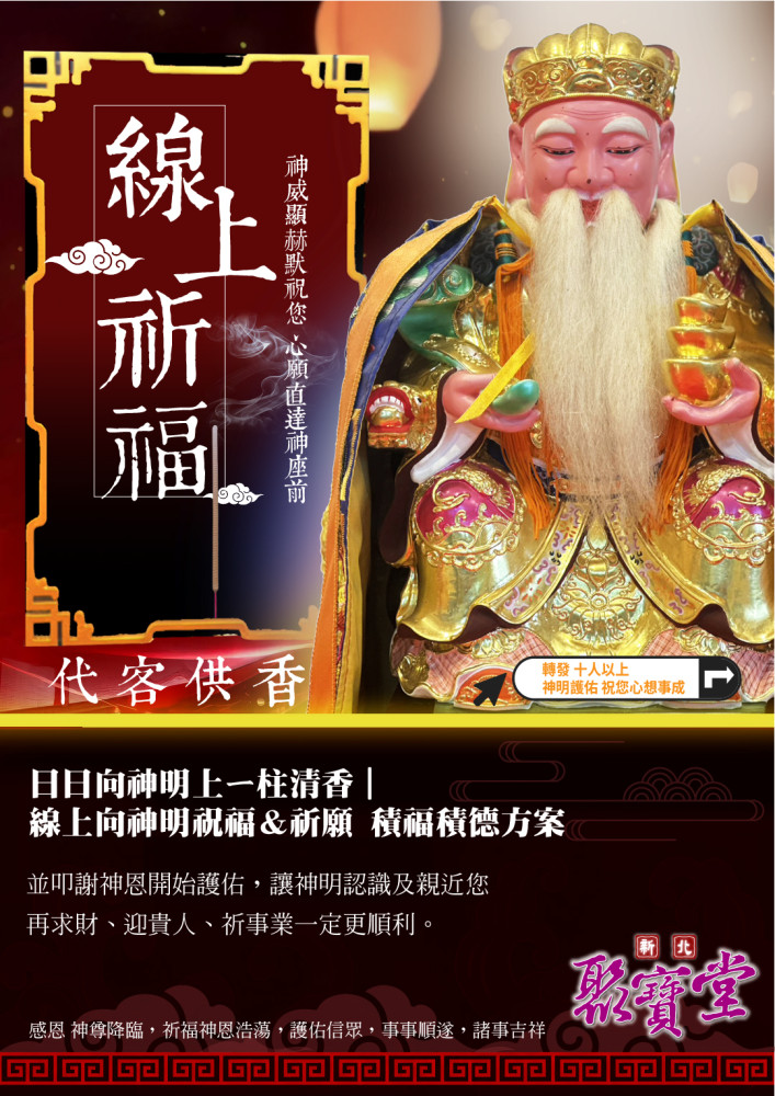 您是否正在尋求方便又靈驗的拜拜服務,讓您足不出戶或不方便出門時即可獲得神明的庇佑?今天的求財線上拜拜推薦專題要為您介紹「新北市聚寶堂」,這是一個將傳統拜拜文化與現代科技結合的全新代拜平台。若您對線上拜拜、代燒金紙或招財錢母感興趣,那就千萬不能錯過今天的求財線上拜拜推薦專題。