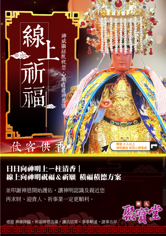 您是否正在尋求方便又靈驗的拜拜服務,讓您足不出戶或不方便出門時即可獲得神明的庇佑?今天的求財線上拜拜推薦專題要為您介紹「新北市聚寶堂」,這是一個將傳統拜拜文化與現代科技結合的全新代拜平台。若您對線上拜拜、代燒金紙或招財錢母感興趣,那就千萬不能錯過今天的求財線上拜拜推薦專題。